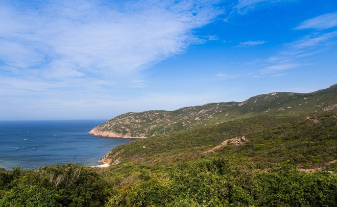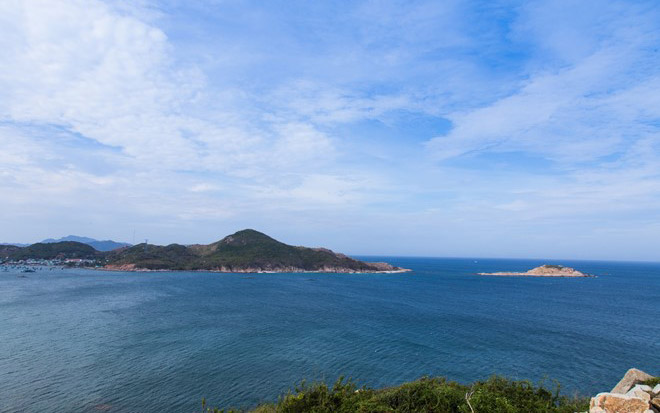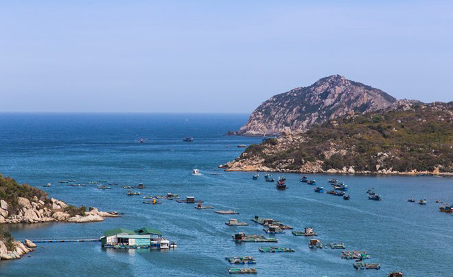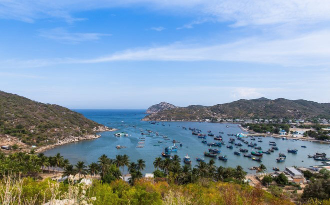 Sau khi chia tay với hang Rái, chúng tôi tiếp tục hành trình trên cung đường ven biển Vĩnh Hy - Bình Tiên. Đây là khung cảnh vịnh Vĩnh Hy nhìn từ đồi cao.