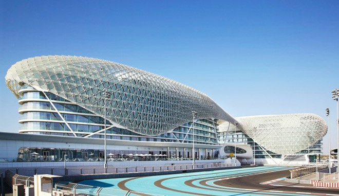Đường đua F1 chuẩn quốc tế được xây dựng bên cạnh hệ thống khách sạn cao cấp Yas Viceroy Abu Dhabi. Từ ban công khách sạn, du khách có thể thoải mái thưởng thức những vòng đua kịch tính.