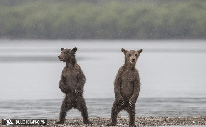 Marco ghi lại khoảnh khắc của hai con gấu khi chúng đứng thẳng, hướng cái nhìn tò mò về phía mình. Dường như chúng đang muốn biết anh đang làm gì.