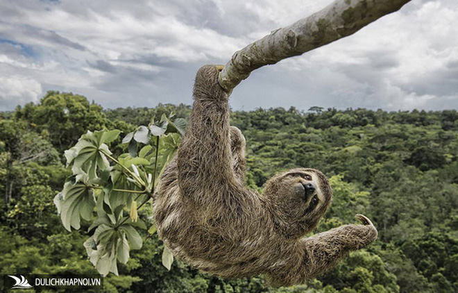 Nhiếp ảnh gia Luciano Candisani đã phải leo lên cây cao trong rừng nhiệt đới Atlantic thuộc miền nam Bahia (Brazil) để thực hiện bức ảnh ấn tượng về một con lười đang ăn lá cây.