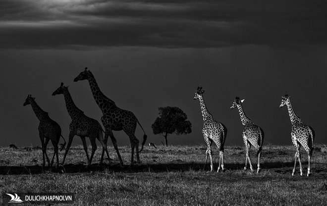 Bức ảnh đen trắng tuyệt đẹp về những chú hươu cao cổ được Uri Golman ghi lại trên vùng đồng bằng Maasai Mara (Kenya) sau một tuần cắm lều trại ở đây.