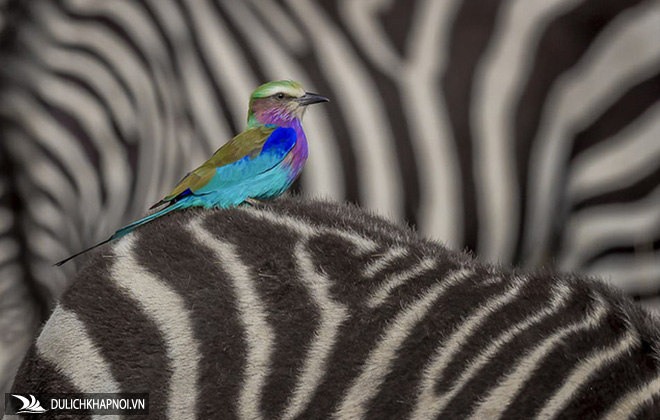 Chim Sả ngực hoa cà đậu trên lưng ngựa vằn