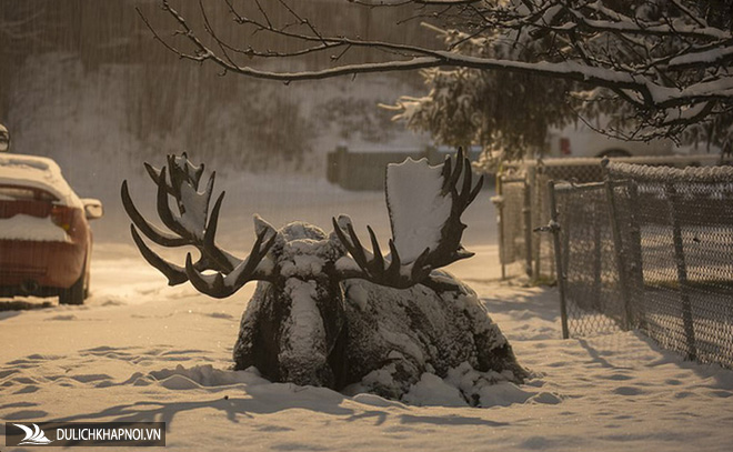 Bức ảnh của Ryan Miller chụp một chú nai sừng tấm nằm nghỉ trên tuyết lạnh ở thành phố Anchorage, Alaska.