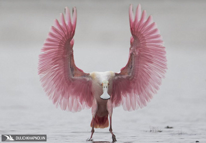 Cò mỏ thìa hồng cất cánh bay tại Florida (Mỹ)