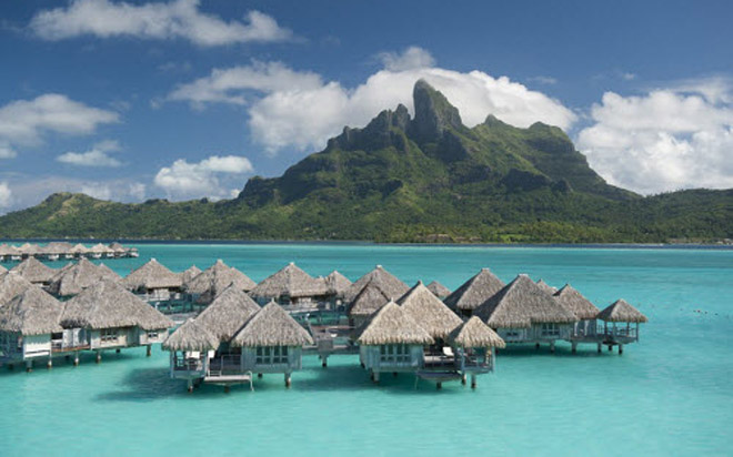 Với bãi biển đặc trưng của vùng nhiệt đới và dịch vụ spa hảo hạng, khu nghỉ dưỡng St. Regis Bora Bora trên quần đảo Polynesia (Pháp), là điểm nổi tiếng dành cho các cặp đôi mới cưới hưởng thụ tuần trăng mật.