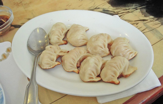 Guo tie là sự kết hợp của sủi cảo và bánh bao chiên. Nhân làm từ tôm, thịt heo, bò rồi kẹp cùng rau cải bắp, gừng và hành.