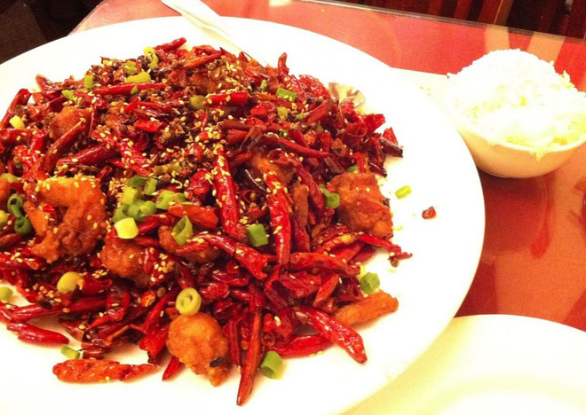 Nếu thực khách đang tìm một món cay, hãy thử ngay la zi ji, đặc sản của vùng Tứ Xuyên, Trung Quốc. Những miếng thịt ức gà được xé nhỏ trộn cùng tiêu, ớt và vừng.