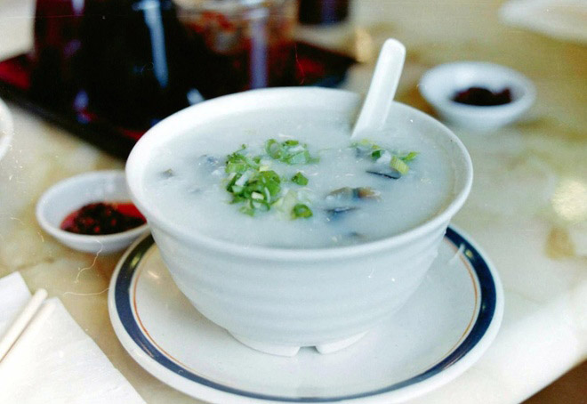 Khá giống với cháo, congee được chuẩn bị bằng cách nấu gạo với nước tạo thành loại súp đặc. Congee có thể ăn kèm với các loại thịt gà, heo hay bánh donut chiên.
