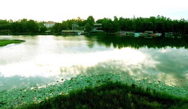 Khung cảnh ngập nước, xanh tốt, hòa quện với sắc hồng của hoa sen, hoa súng tạo nên khung cảnh lãng mạn.