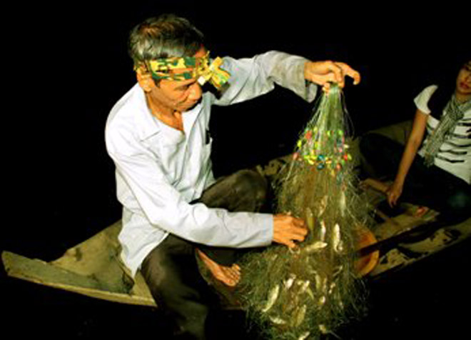 Du khách được tự tay trải nghiệm những công việc các hoạt động sinh kế của cư dân vùng lũ như giăng lưới, đặt lợp, đặt trúm, hay câu cá.